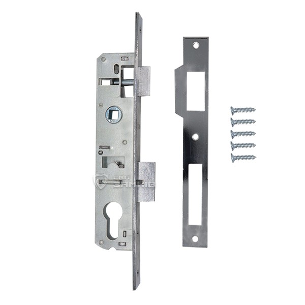 Компактний замок, що призначений для встановлення на алюмінієві двері офісних приміщень, хвіртки приватних будинків, або не масивні металеві двері складських приміщень. На замок встановлюється серцевина, яка запирає дверне полотно. Як правило до даного механізму підбирають ручку на планці з міжосьовою відстанню 85 мм, або ручку на овальній вузькій розеті.