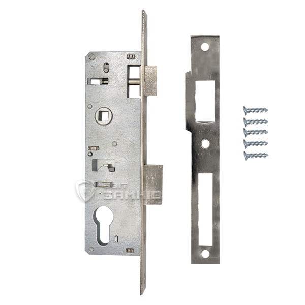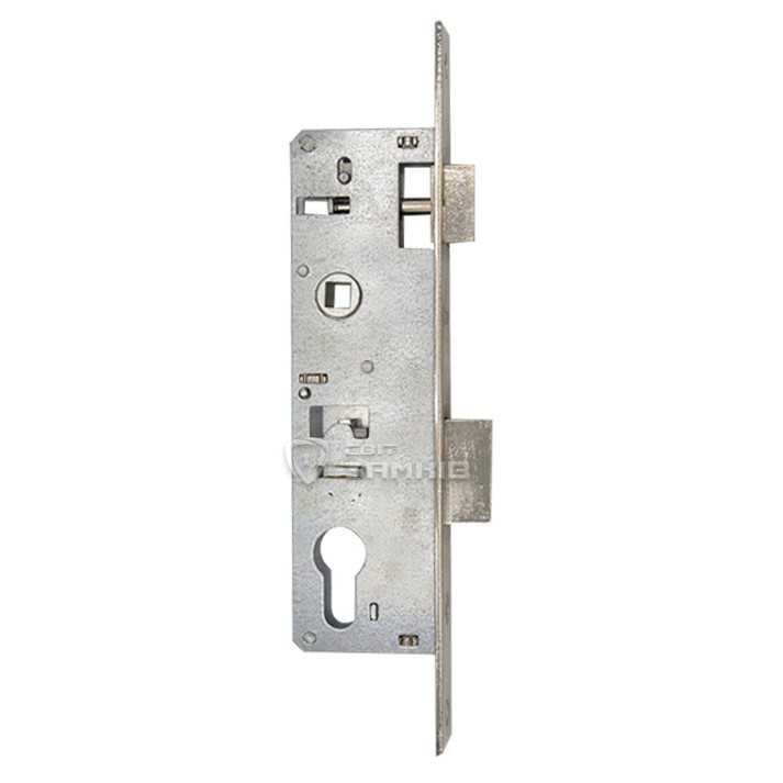 Компактний замок, що призначений для встановлення на алюмінієві двері офісних приміщень, хвіртки приватних будинків, або не масивні металеві двері складських приміщень. На замок встановлюється серцевина, яка запирає дверне полотно. Як правило до даного механізму підбирають ручку на планці з міжосьовою відстанню 85 мм, або ручку на овальній вузькій розеті.
