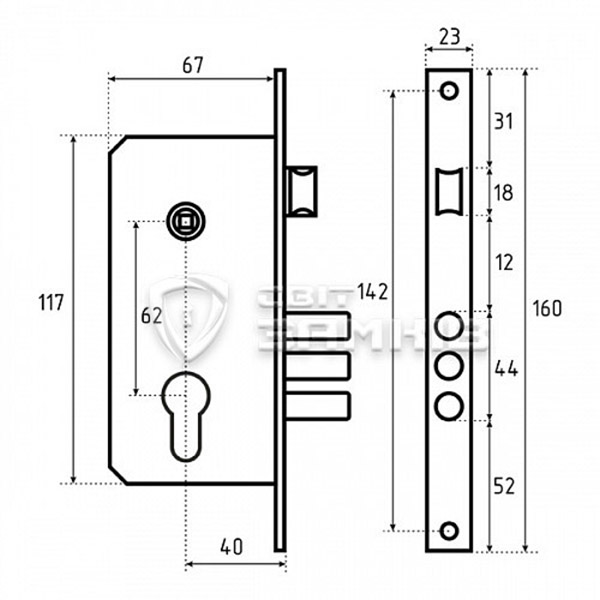 Механізм замка HORST HR-06S (BS66,5*42мм) правий