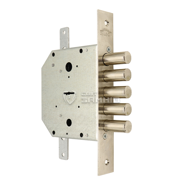 Замки даного типу відзначаються своєю довговічністю і зносостійкістю. Матеріали та конструкція відповідають міжнародним стандартам якості. Підходить для важких броньованих та гаражних дверей. Механізм оснащений п'ятьма ригелями для більш надійного запирання дверей.