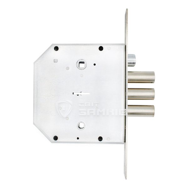 Основний замок який керується ручкою, сувальдним ключем та воротком нічної засувки. В моделі цього замка немає реверсивного язичка, тому підбирати слід його в залежності від сторонності дверей. Секрет вбудований в корпус. Не потребує комплектації серцевиною.