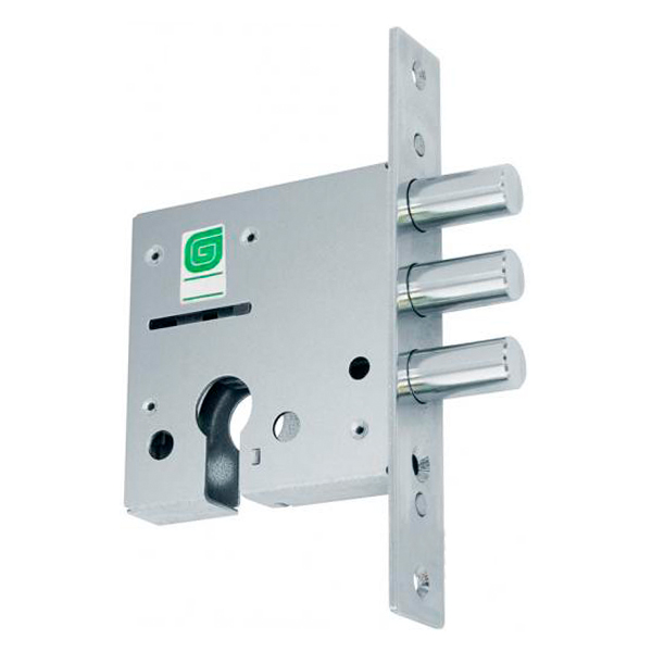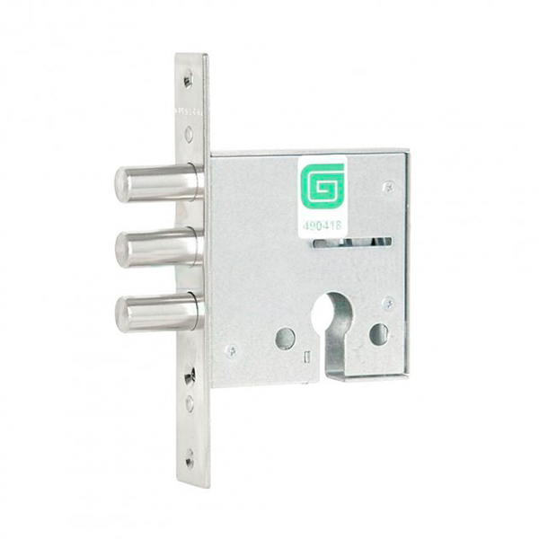 ГАРДІАН 12.01 - це врізний замок, що керується серцевиною розповсюдженого у нас стандарту EURO DIN. Його легко встановлюють в металеві та дерев'яні двері в якості додаткового і навіть за потреби в сейфи. Ригелі замка висуваються на два повних оберти.