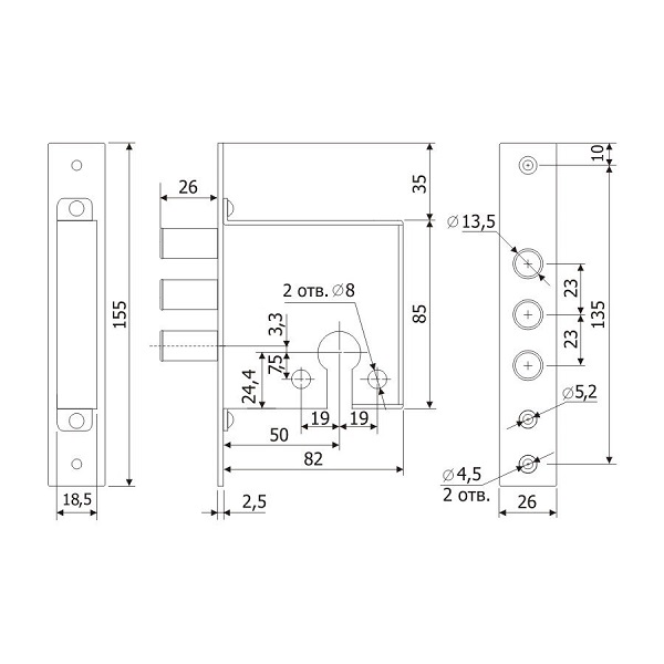Механізм замка ГАРДІАН 12.01 (BS52,5мм)