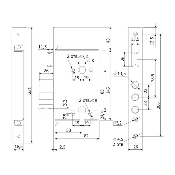 Механізм замка HORST HR-06S (BS66,5*42мм) правий