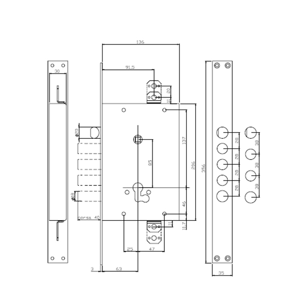 Замок ISEO 678GF популярний, врізний замок для встановлення на вхідних металевих дверях приватних будинків, квартир, масивних офісних дверях вагою до 200 кг. П’ять укріплених ригелів мають захист проти злому та тиску, керуються циліндром.