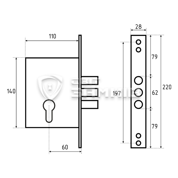 Механізм замка SHERLOCK 30.11 (BS67,5*77мм) 5 ключів