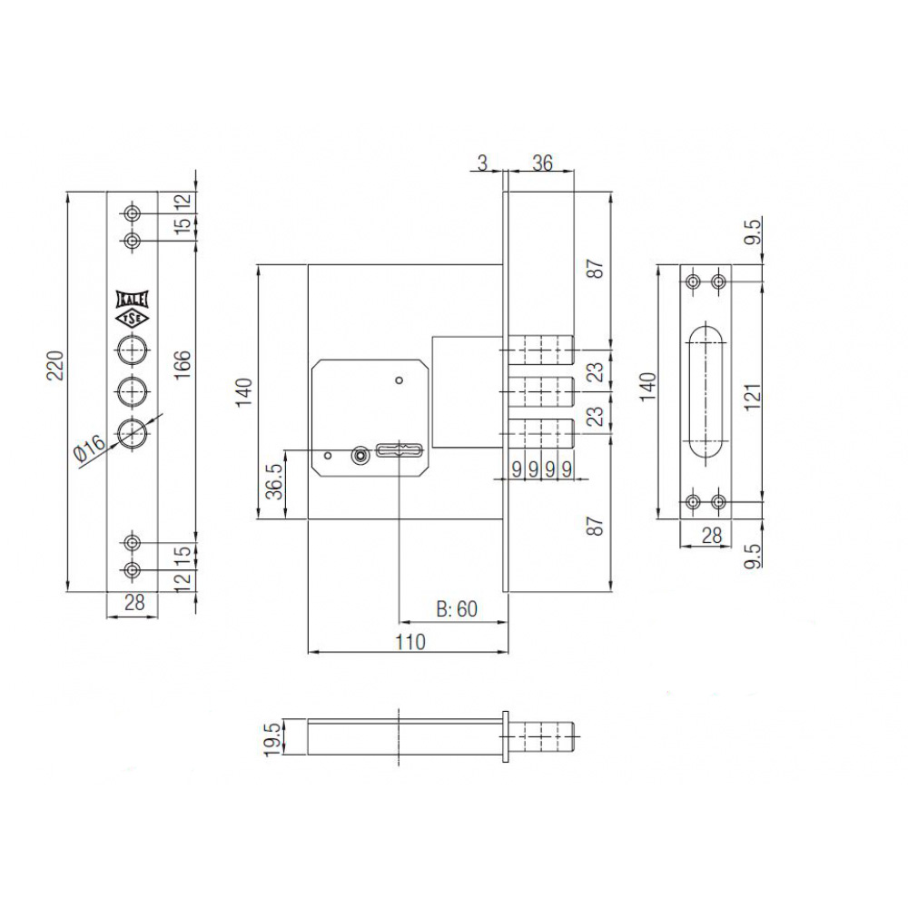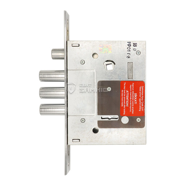Дверна фурнітура турецької ТМ KALE є однією з найкращих по співвідношенню ціна/якість. Дана модель - це 3-х ригельний врізний замок, який встановлюється на металеві вхідні двері. Не має язичка, тому використовується в якості додаткового верхнього замка. Повний вихід ригелів діаметром 16 мм складає 36 мм. Керування відбувається сувальдним ключем. Особливістю цієї моделі є четвертий ригель, закрити/відкрити який можливо тільки воротком.