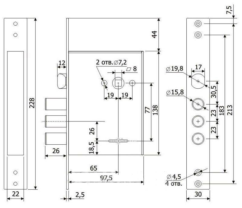 Механізм замка SHERLOCK 30.11 (BS67,5*77мм) 5 ключів