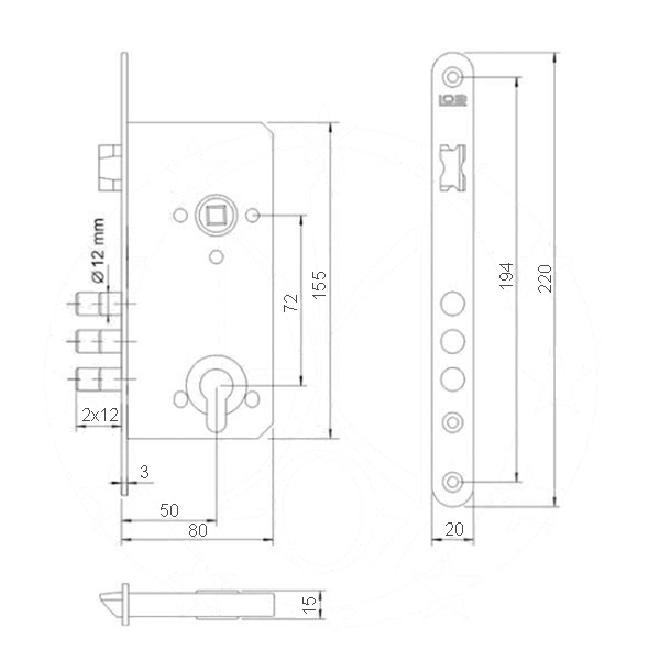 Замок LOB ZT-75B – врізний механізм, який обирають для вхідних металевих чи дерев’яних дверей у якості основго. Язичок замка може дотягуватись ключем. Три круглі ригелі керуються серцевиною стандарту EURO DIN.