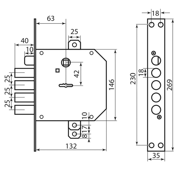 Замок дверний, сувальдний Mottura 89.723 призначений для установки на металеві та броньовані двері в житлових і громадських приміщеннях. Часто можна зустріти врізку корпусу на гаражні чи складські двері. До даної моделі підбирають ручку на планці з міжосьовою відстанню 42 мм.
