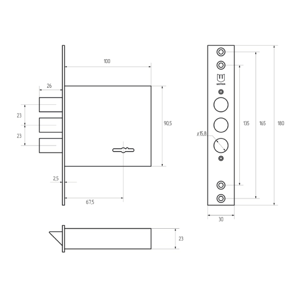 Механізм замка SHERLOCK 30.11 (BS67,5*77мм) 5 ключів