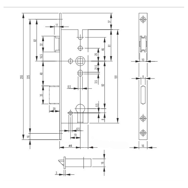 Компанія BKS - німецька якість, перевірена роками. Особливість даного замка – вузька торцева планка, 16 мм, тому він встановлюється на металопластикові двері. Вузький за профілем корпус врізається в полотна і непомітний зовні. Встановлюється як на ліві так і на праві двері. Язичок замка керується нажимною ручкою, яка підбирається окремо.