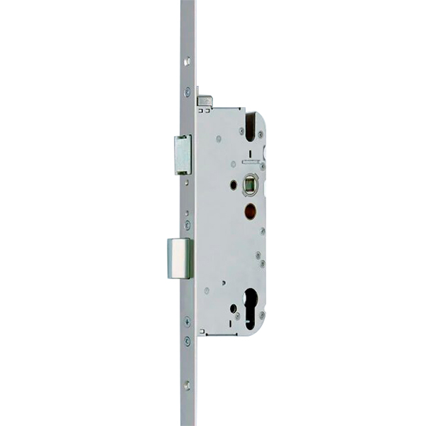 Німецький виробник G-U вже більше століття спеціалізується на випуску дверної та віконної фурнітури. Дана модель GU-Sec MR2 - це рейковий замок. Встановлюють його переважно на двері з профільного алюмінію. За рахунок рейки та встановлених на ній ригелів він має декілька точок запирання. Ця функція дуже важлива для такого типу дверей, тому що при зміні температури металопластиковий профіль починає "грати" та не прилягає щільно до рами. Верхній і нижній стальні ригелі допомагають фіксувати дверне полотно по всій висоті створки. Двері міцно прилягають та не пропускають повітря. Керування здійснюється за допомогою подвійного повороту ключа в серцевині на 360°. У результаті цього замикаючі елементи входять у свої зворотні планки і відбувається повне зачинення замка.