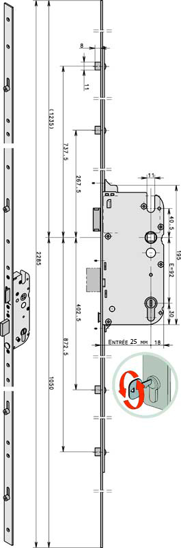 Механізм замка GU Secury R4 заскочка 25*92 мм рейка 2285 мм