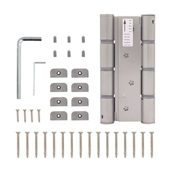 Особливістю цієї моделі є можливість регулювання пружини з нержавіючої сталі, що дозволить налаштувати закривання максимально індивідуально. Це забезпечить затримку руху перед відкриттям або закриттям, а також зменшить коливання дверей. В кольорі “сатин хром” найкраще буде доповнювати двері відповідних сірих відтінків.