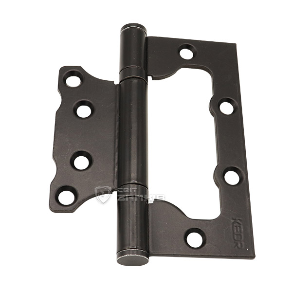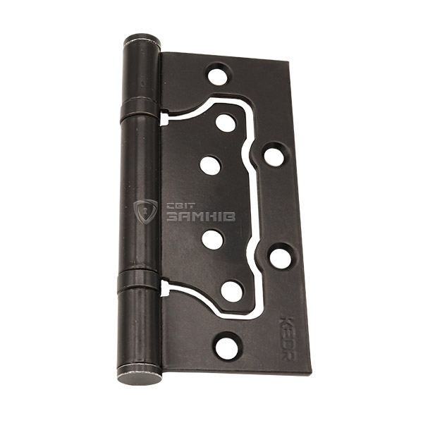 Завіс торгової марки KEDR. Ця серія завіс має форму метелика, що робить їх універсальними і дає змогу встановлювати як на ліві, так і на праві двері. Виготовляється із міцної сталі з використанням двох підшипників. Завдяки цьому двері будуть рухатись плавно і не будуть провисати чи розхитуватись з часом. При виборі обов'язково потрібно враховувати вагу та габарити дверного полотна, щоб визначитись із кількістю потрібних петель. Гальванічне покриття забезпечить стійкість кольорового відтінку до стирання та подряпин. Чорний матовий колір добре підійде для дверного полотна в темних відтінках. Монтаж завіс здійснюється швидко і не потребує фрезерування у дверне полотно. Рекомендуємо використовувати такі завіси на легкі дверні конструкції.