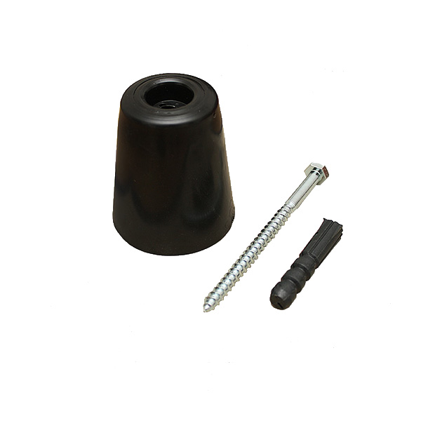 Стопор - это аксессуар, который предназначен для защиты дверного полотна, стен и мебели от повреждений во время неконтролируемого открытия дверей. По сути он ограничивает угол открывания, тем самым сохраняя ручки от удара о стену. Данная модель MEGA выполнена в виде конусообразной "бочки". Имеет относительно небольшие размеры, поэтому не будет привлекать лишнего внимания. Монтируется к полу с помощью дюбеля. Стопор изготовлен из эластичной резины поэтому максимально безопасный по сравнению с металлическими вариантами. Данная модель выполнена в форме "бочки" обычно используется вместе с дверью в которой есть порог, так как из-за расстояния между полотном и полом нет возможности поставить стопор меньшего размерами. В черном цвете лучше будет дополнять двери и пол аналогичных темных оттенков для того, чтобы максимально избежать контрастов и не привлекать лишнего внимания.