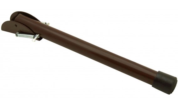 Данная модель "VOLYA средняя" представляет собой откидную “ножку”. Состоит из трубы с резиновым наконечником, кронштейна и двух пружин, фиксирующих стопор в крайних точках. Служит для фиксации двери в открытом положении, для чего ее нужно вручную ее опустить. Благодаря пружине имеет приятный ход. Монтируется к дверному полотну. "Ножка" изготовлена из трубчатого металла и формируемая методом штамповки. В месте контакта с полом имеется резиновая вставка. Применяется как с межкомнатными, так и входными дверями. В коричневом цвете лучше будет дополнять двери и пол соответствующих темных оттенков для того, чтобы максимально избежать контрастов и не привлекать лишнего внимания.