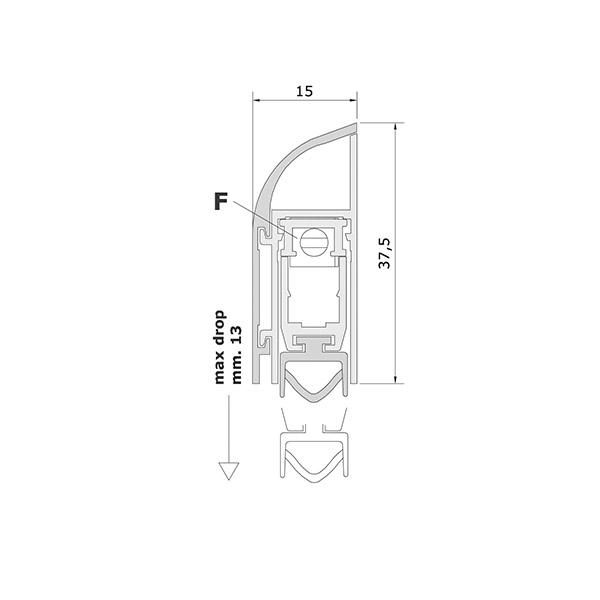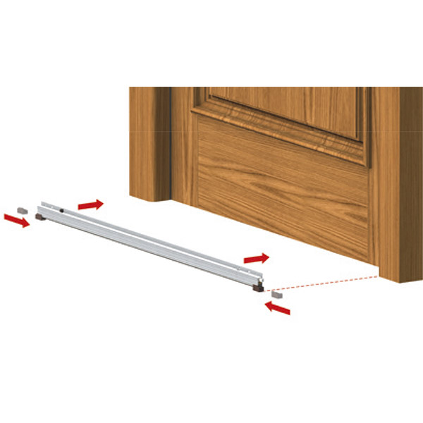 Выдвижной порог COMAGLIO 1450 из серии COMAX - это уплотнитель двери, устанавливаемый накладным монтажом на деревянные, алюминиевые и бронированные дверные полотна. Имеет один вид регулирования (винт F - опускание). Он управляет подвижным профилем с прокладкой (немедленное опускание со стороны петель и дальнейшее постепенное опускание по всей длине), тем самым обеспечивая максимально сильный и равномерный прижим по всей его длине. При этом важно помнить, что пространство между дверью и полом должно быть не больше, чем максимальная высота, на которую опускается порог.
