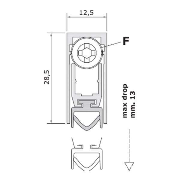Выдвижной порог COMAGLIO 420 из серии BASIC - это уплотнитель двери, который устанавливается врезным монтажом в пластиковые, деревянные, алюминиевые и металлические бронированные дверные полотна. Имеет один вид регулировки (винт F - опускание). Он управляет подвижным профилем с прокладкой (опускания со стороны петель и дальнейшее постепенное опускание по всей длине), тем самым обеспечивая максимально сильный и равномерный прижим по всей его длине. При этом важно помнить, что пространство между дверью и полом должно быть не больше, чем максимальная высота, на которую опускается порог.