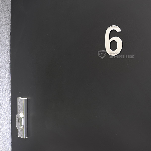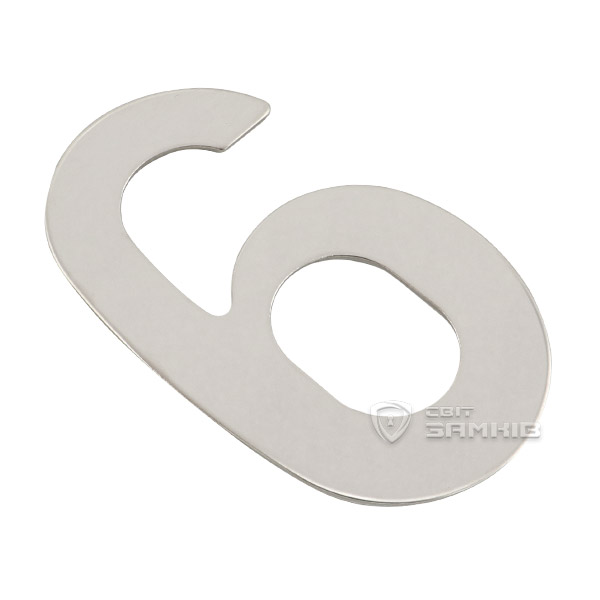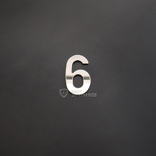 Цифра служит для номерного обозначения дома, квартиры, секции или иного помещения. Изготовлена из нержавеющей стали. Высота составляет 7,6 см. Устанавливается на дверное полотно с помощью самоклеющейся пленки.