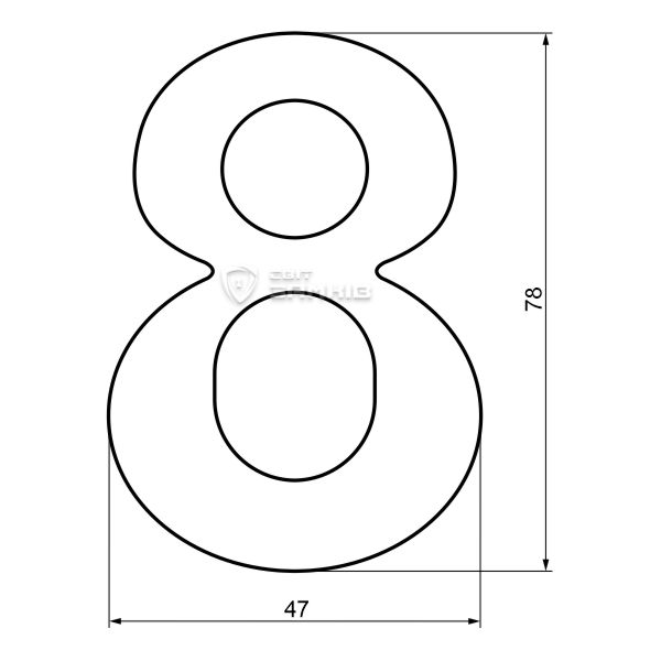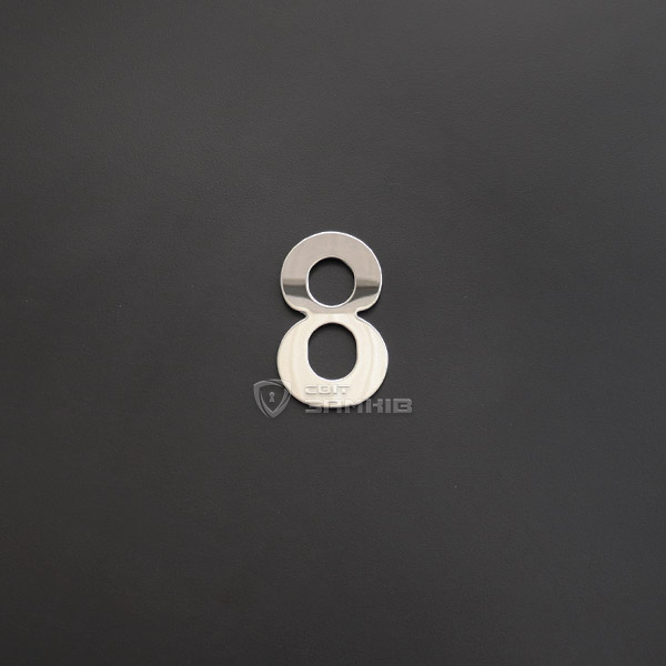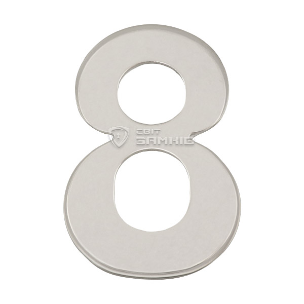 Цифра служит для номерного обозначения дома, квартиры, секции или иного помещения. Изготовлена из нержавеющей стали. Высота составляет 7,6 см. Устанавливается на дверное полотно с помощью самоклеющейся пленки.