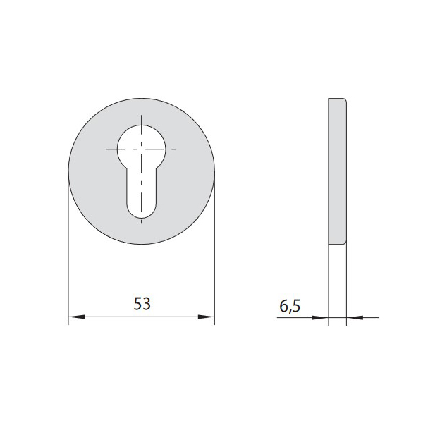 Накладка позволяет скрыть монтажные отверстия, царапины и другие повреждения, которые могут появиться при установке замка и сердцевины. Изготовлена из латуни, имеет круглую форму диаметром 53 мм. В цвете "хром полированный" лучше всего будет дополнять соответствующий цвет протектор и двери светлых оттенков.