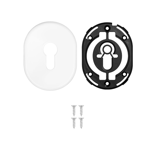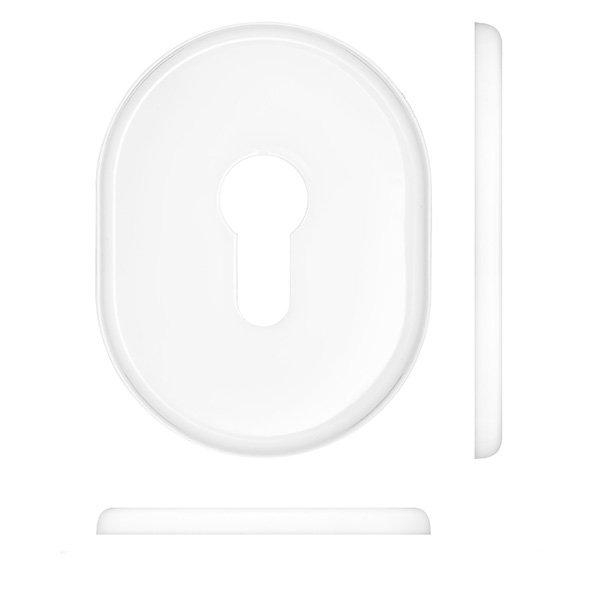 Декоративная накладка DISEC KT036 - это декоративный элемент, предназначенный для придания дверным полотнам более опрятного вида. Используется в паре с врезными броненакладками с замками и сердечником стандарта EURO DIN. Крепится с внутренней стороны двери с помощью пластика и саморезов. Накладка дает возможность скрыть монтажные отверстия, царапины и другие повреждения, которые могут появиться при установке замка и сердцевины. Изготовлена из латуни, имеет овальную форму размером 85х65 мм. В белом цвете лучше будет дополнять соответствующего цвета протектор и двери аналогичных оттенков для того, чтобы максимально избежать контрастов и не привлекать лишнего внимания. Монтаж происходит довольно просто.