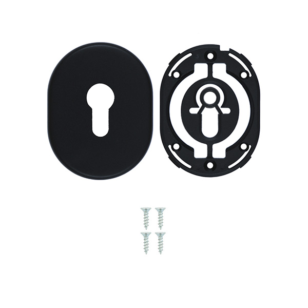 Декоративная накладка DISEC KT036 - это декоративный элемент, предназначенный для придания дверным полотнам более опрятного вида. Используется в паре с врезными броненакладками с замками и сердечником стандарта EURO DIN. Крепится с внутренней стороны двери с помощью пластика и саморезов. Накладка дает возможность скрыть монтажные отверстия, царапины и другие повреждения, которые могут появиться при установке замка и сердцевины. Изготовлена из латуни, имеет овальную форму размером 85х65 мм. В черном цвете лучше будет дополнять соответствующего цвета протектор и двери аналогичных оттенков для того, чтобы максимально избежать контрастов и не привлекать лишнего внимания. Монтаж происходит довольно просто.