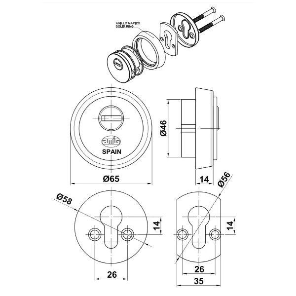 Продукция ТМ AMIG производится в Испании. На данный момент это один из лучших местных производителей дверной фурнитуры. Среди его ассортимента для защиты дверей обязательным для установления является протектор (или броненакладка). Его основная задача - усложнить или вообще исключить возможность злоумышленникам попасть внутрь помещения, сломав замок. Данная модель AMIG 30 устанавливается на входную дверь вместе с замками и сердечником стандарта EURO DIN. Изготовлена из закаленной стали. Имеет специфическое расстояние между крепежными отверстиями - 26 мм. Поэтому подходит преимущественно для замков испанских производителей AZBE, TESA MCM и т.д. Монтируется накладным методом. Он проще, чем врезной, и не требует высверливания отверстий для посадки броненакладки. Однако в таком случае она не образует с замком монолитную конструкцию, из-за чего легче добраться до стяжных винтов и срезать их. Чашка позволяет немного утопить протектор, но все равно пространство между ним и сердцевиной остается. Само крепление осуществляется стяжными винтами М6x50. Длина винтов позволяет ставить броненакладку на дверные полотна толщиной от 40 до 45 мм. Эти цифры указаны с учетом того, что винты закручены на всю длину крепежного отверстия. Таким образом, протектор защищает сердцевину от физических и силовых методов взлома - сверление и выбивания. Высота (или толщина) протектора составляет 14 мм, диаметр - 65 мм. В цвете "антик" лучше будет дополнять двери светлых оттенков с бархатистым и сочным покрытием.
