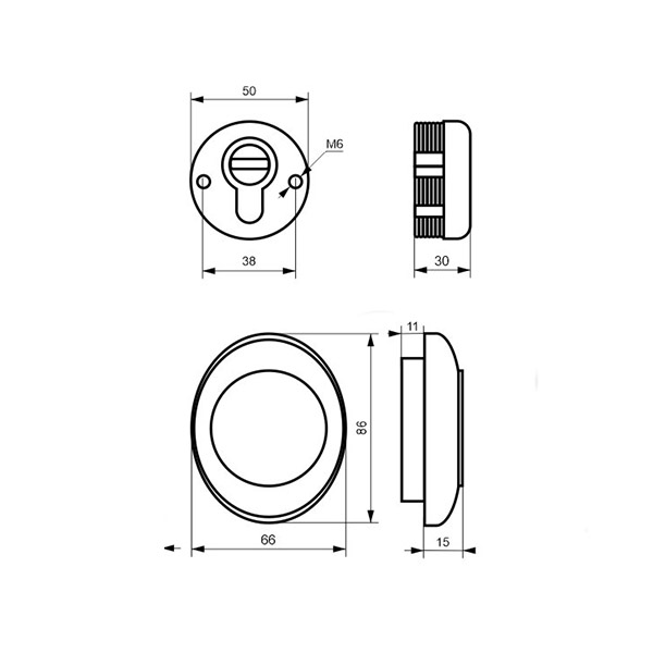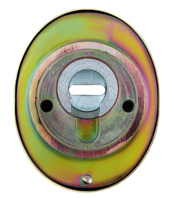Монтируется врезным методом: по его диаметру делается отверстие в дверном полотне. Крепится сквозь вокруг сердцевины стяжными винтами М6 с технологией Flex. Ее суть заключается в более мелкой резьбе и определенной насечке. Благодаря этому и специальному виду жесткой стали винты выдерживают нагрузку в 5 раз больше, чем обычные. Так они создают монолитную конструкцию с сердцевиной. Таким образом, протектор защищает ее вместе с точкой крепления в дверях от физических и силовых методов взлома - сверления, взлома и выбивания. Доступа к винтам крепления нет и сорвать саму броненакладку чрезвычайно сложно. Также вкручивается в усиленную внешнюю "юбку". Высота (или толщина) протектора составляет 30 мм, диаметр - 50 мм. В цвете "латунь PVD" лучше будет дополнять двери светлых оттенков.