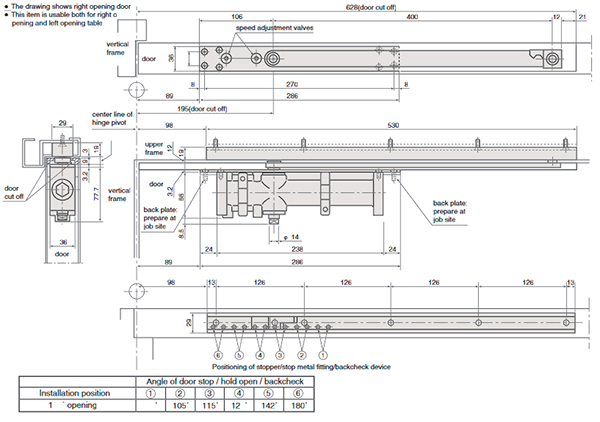 Продукция японского производителя RYOBI по праву признана во всем мире благодаря своему отличному качеству. Данная модель RYOBI CO-54 SLD - это скрытый доводчик. Главной его фишкой является минимальное вмешательство в дизайн помещения. На практике это буквально означает, что он спрятан внутрь дверной коробки и полотна и совершенно незаметен, когда двери закрыты. Устанавливается врезным монтажом на дверные полотна массой до 85 кг и максимальным размерами 1050х2400 мм. Гидравлический привод обеспечивает четкую работу доводчика. Непосредственно на корпусе есть возможность регулировать начальную и конечную скорость. Благодаря этому можно достичь индивидуальной настройки закрытия дверей так как Вам нужно. Особенностью доводчиков RYOBI является специальное термоконстантне масло. Оно обеспечивает стабильную работу даже при большом перепаде температур. Вообще рабочая температура варьируется в диапазоне от -20°С до +45°С. Комплектуется исключительно скользящей тягой, толщина рейки которой составляет 29 мм. Сам же доводчик изготовлен по технологии литья под высоким давлением. Благодаря этому прослужит максимально долго и является одним из надежных в своем классе.