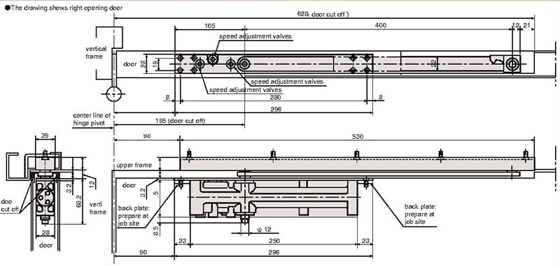 Продукция японского производителя RYOBI по праву признана во всем мире благодаря своему отличному качеству. Данная модель RYOBI COU-52 SLD L- это скрытый доводчик. Главной его фишкой является минимальное вмешательство в дизайн помещения. На практике это буквально означает, что он спрятан внутрь дверной коробки и полотна и совершенно незаметен, когда двери закрыты. Устанавливается врезным монтажом на левосторонние дверные полотна массой до 45 кг и максимальным размерами 900х2100 мм. Гидравлический привод обеспечивает четкую работу доводчика. Непосредственно на корпусе есть возможность регулировать начальную и конечную скорость, а также скорость дожима двери. Благодаря этому можно достичь индивидуальной настройки закрытия дверей так как Вам нужно. Особенностью доводчиков RYOBI есть специальное термоконстантное масло. Оно обеспечивает стабильную работу даже при большом перепаде температур. Вообще рабочая температура варьируется в диапазоне от -20°С до +45°С. Комплектуется исключительно скользящей тягой, толщина рейки которой составляет 29 мм. Сам же доводчик изготовлен по технологии литья под высоким давлением. Благодаря этому прослужит максимально долго и является одним из надежных в своем классе.