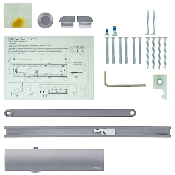 RYOBI D-3200T BC SLD HO – это доводчик, устанавливаемый накладным монтажом на дверные полотна массой до 80 кг и шириной до 1100 мм. Шестеренно-реечный тип внутреннего механизма обеспечивает четкую работу доводчика с углом открывания до 130°.