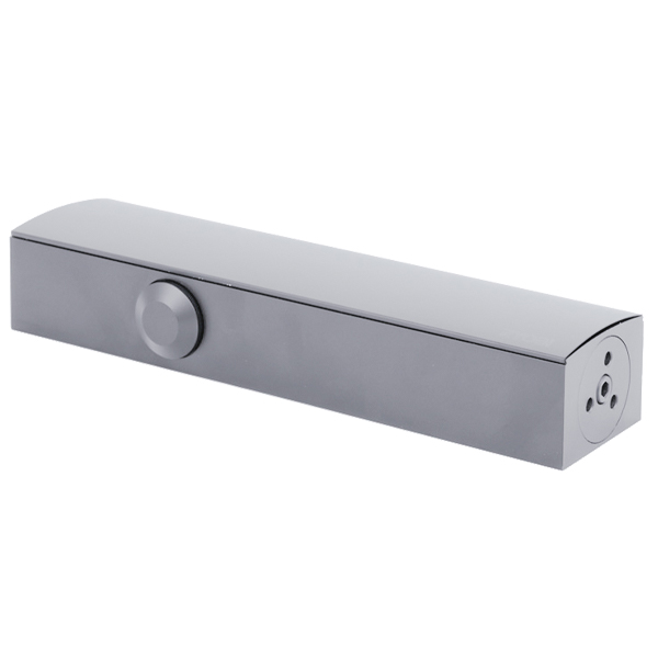 В данной комплектации присутствует скользящая тяга с фиксацией дверного полотна в открытом положении. Это дает возможность оставить дверь открытой для проветривания или удобства пользования в коммерческих помещениях. В сером цвете лучше всего будет дополнять двери подобных серых оттенков для того, чтобы максимально избежать контрастов и не привлекать лишнего внимания.