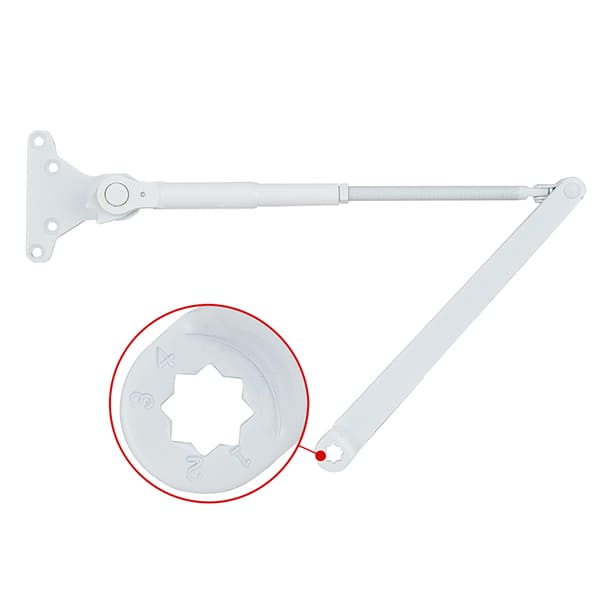 Тяга RYOBI предназначена для доводчиков RYOBI серии 8800 в белом цвете. Тяга параллельная. Позволяет фиксировать дверное полотно в открытом положении в диапазоне от 70 до 180 градусов (в зависимости от типа доводчика). Обеспечивает надлежащую силу удержания двери в открытом состоянии с помощью регулировки усилия открытия.