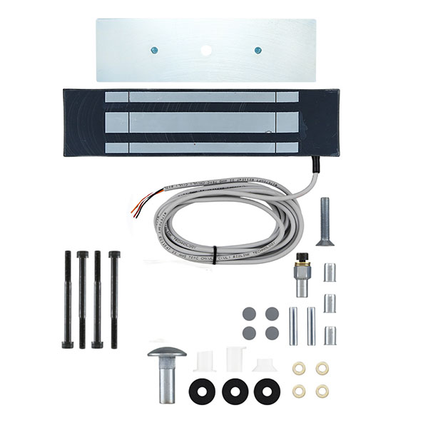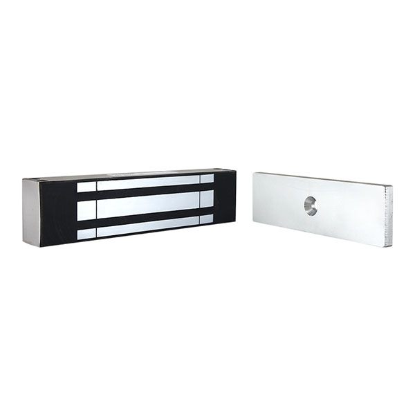 Замок состоит из 2 частей: корпуса с электромагнитом и ответной планки с высокой магнитной проницаемостью. Суть его работы заключается в их магнитном взаимодействии. Это происходит посредством электрического импульса, который дает устройство управления. Например, это могут быть системы контроля доступа или удаленное устройство (реле времени, кодонаборная панель или кнопки). При подаче питания 12/24V DC корпус замка примагничивает ответную планку. Так происходит закрывание двери. При отсутствии сигнала замок отпускает планку и дверь открывается.