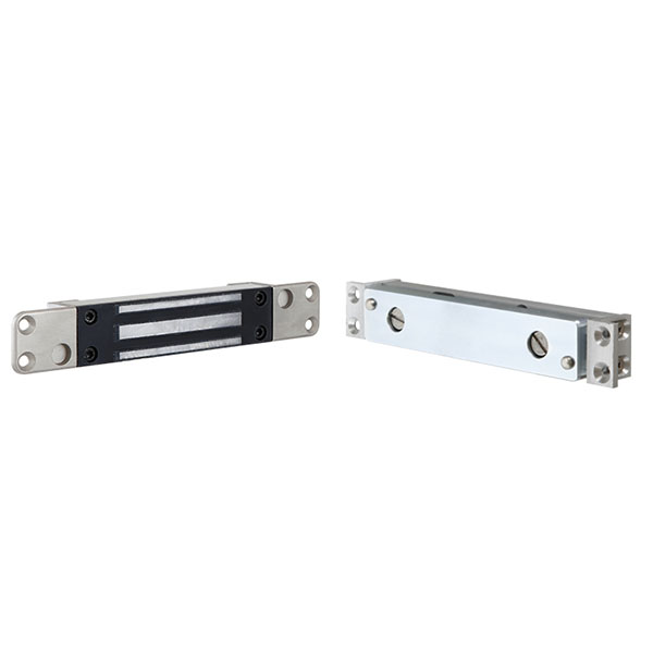 Замок состоит из 2 частей: корпуса с электромагнитом и ответной планки с высокой магнитной проницаемостью. Суть его работы заключается в их магнитном взаимодействии. Это происходит посредством электрического импульса, который дает устройство управления. Например, это могут быть системы контроля доступа или удаленное устройство (реле времени, кодонаборная панель или кнопки). При подаче сигнала 24V DC корпус замка примагничивает ответную планку. Так происходит закрывание двери. При отсутствии сигнала замок отпускает планку и дверь открывается.