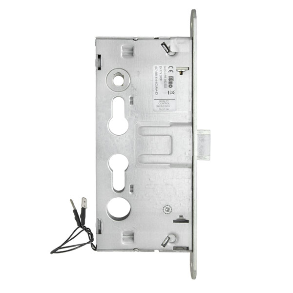 ISEO 214910654 – это электромеханический соленоидный замок. Предназначен для использования в металлических противопожарных дверях (согласно EN 1634-1) толщиной до 140 мм, которые открываются наружу. Подходит для правосторонних полотен в общественных, производственных и жилых зданиях. Управление снаружи осуществляется сердцевиной и электрическим импульсом, который дает устройство управления. Это означает, что с наружной стороны можно открыть дверь ручкой только после подачи электрического импульса. Например, это могут быть системы контроля доступа или удаленное устройство (реле времени, кодонаборная панель или кнопки). Когда электрический сигнал исчезает, замок автоматически закрывает снаружи доступ в помещение. Также блокировка ригелем и язычком осуществляется автоматически простым закрыванием дверей. С внутренней стороны открыть дверь можно с помощью нажатия на ручку, поэтому замок подходит для использования в системах антипаники. Управление также производится цилиндром стандарта EURO DIN: при закрытии им снаружи, внешняя поворотная ручка деактивируется и дверь снаружи блокируется.