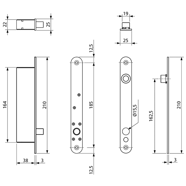Монтируется как в дверную коробку (раму), так и в саму дверь.