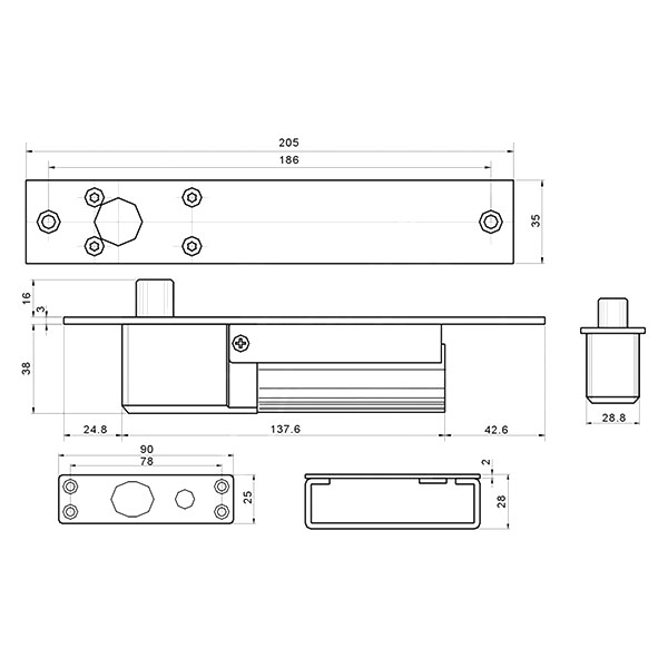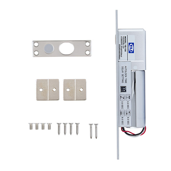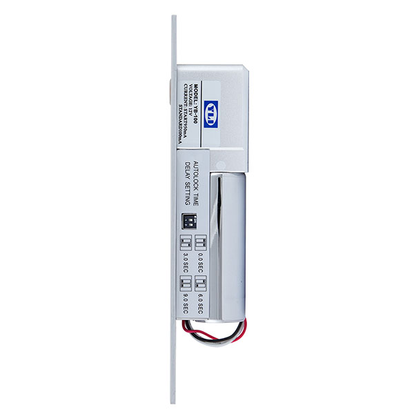 YLI YB-100+ – это электроригельный замок с силой удержания на разрыв до 800 кг. Устанавливается врезным монтажом в дверную коробку или саму дверь. Подходит для металлических, пластиковых, металлопластиковых, деревянных и стеклянных дверей. Замыкание производится одним ригелем диаметром 16 мм и длиной 16 мм. Имеет встроенный датчик состояния двери и таймер задержки закрывания на 0, 3, 6, 9 секунд. Он переключается прямо на корпусе замка.