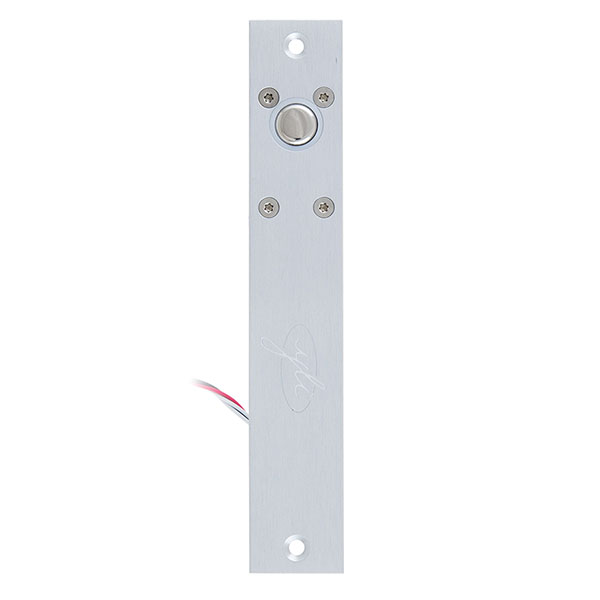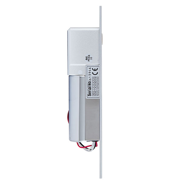 Этот замок работает в нормально открытом состоянии. Это означает, что при подаче питания 12V DC встроенный в замок герметичный контакт реагирует на магнит в ответной планке – он замыкает контакт соленоида, выдвигающего ригель. Отключение происходит снятием напряжения. Станет особенно актуальным для случаев, когда существует необходимость обеспечить гарантированную разблокировку двери при исчезновении питающего напряжения. К примеру, для беспрепятственной быстрой эвакуации людей. Также такой принцип работы подходит для противопожарных дверей.