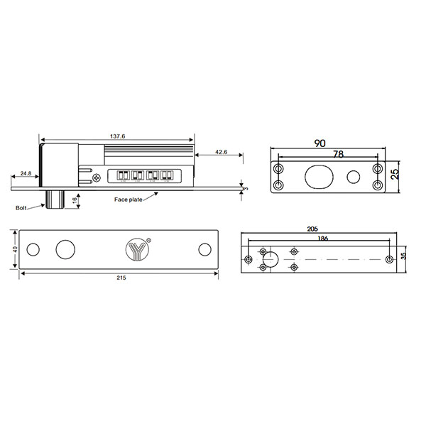 YLI YB-100S – электроригельный замок с силой удержания на разрыв до 800 кг. Устанавливается врезным монтажом в дверную коробку или саму дверь. Подходит для металлических, пластиковых, металлопластиковых, деревянных и стеклянных дверей. Замыкание производится одним ригелем диаметром 16 мм и длиной 16 мм.