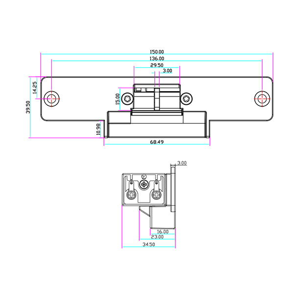 Электрозащелка работает в нормально закрытом состоянии. Это означает, что она закрыта без питания, а отпирание происходит подачей напряжения. Оснащена датчиком состояния двери (открыта/закрыта). Напряжение составляет 12В постоянного тока. Поставляется с короткой планкой размером 150x39,5 мм.