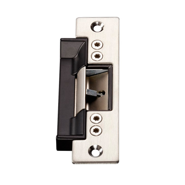 Электрозащелка работает в нормально открытом состоянии. Это означает, что она закрыта при подаче питания, а отпирание происходит снятием напряжения. Станет особенно актуальным для случаев, когда существует необходимость обеспечить гарантированную разблокировку открытой двери при исчезновении питающего напряжения. Например, для быстрой эвакуации людей без использования ключей. Электрозащелка оснащена датчиком состояния двери (открыта/закрыта). Напряжение составляет 12В постоянного тока. Поставляется с короткой планкой размером 123x43 мм.