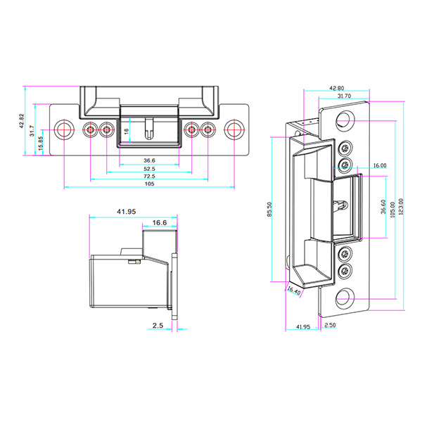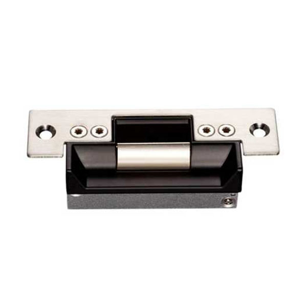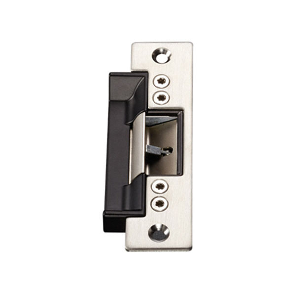 Электрозащелка работает в нормально открытом состоянии. Это означает, что она закрыта при подаче питания, а отпирание происходит снятием напряжения. Станет особенно актуальным для случаев, когда существует необходимость обеспечить гарантированную разблокировку открытой двери при исчезновении питающего напряжения. Например, для быстрой эвакуации людей без использования ключей. Оснащена датчиком состояния двери (открыта/закрыта). Напряжение составляет 12В постоянного тока. Поставляется с короткой планкой размером 123x43 мм.