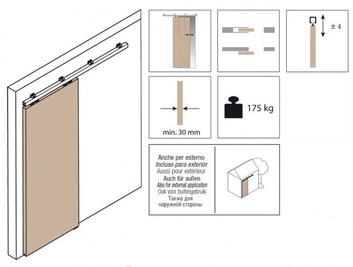 Наша рекомендация: Подбирайте систему с запасом по весу нагрузки. Напкриклад, если у Вас двери изготовлены из массива дуба, приблизительный вес 80 кг. Рекомендуем выбрать систему рассчитанную на 100-120 кг. Такой запас будет гарантией долгой работы!