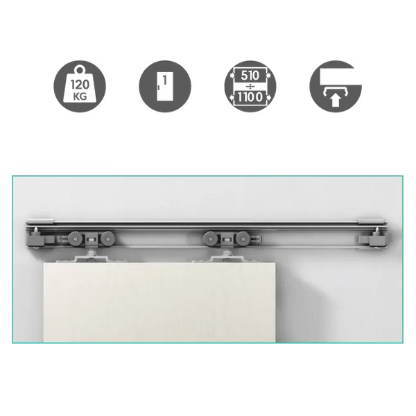 Данная модель Alutech 1400 подходит для ОДНОГО полотна шириной от 510 до 1100 мм и весом до 120 кг. Обычно эта раздвижная система ставится, чтобы разграничить пространство на функциональные зоны или визуально расширить помещение с максимальным доступом естественного освещения.