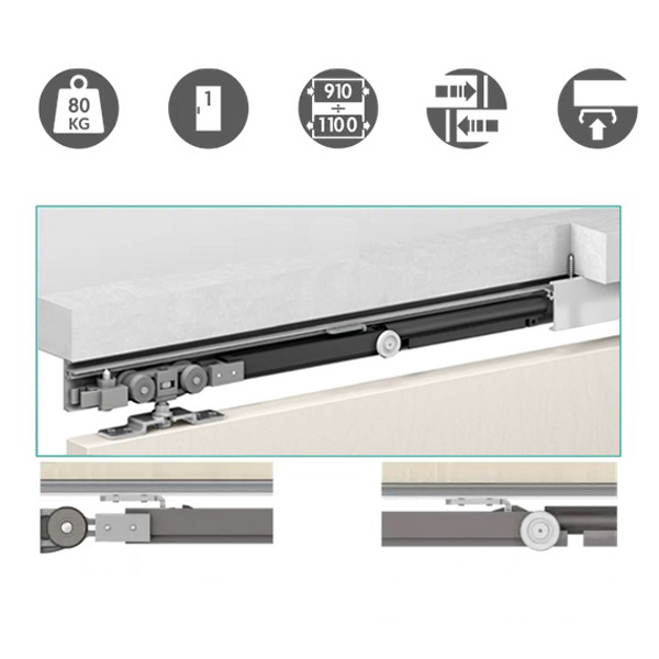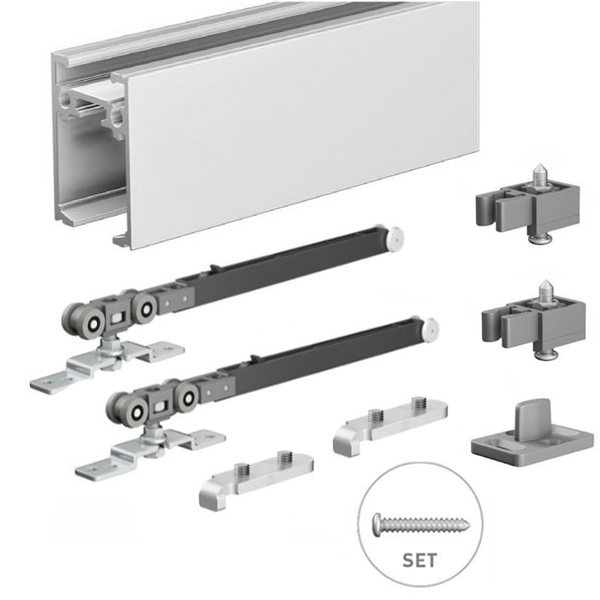 Конструктивно система состоит из алюминиевой рейки (1,9 м), двух демпферов (дотягивателей), нейлоновых колес и шариковых подшипников. Они обеспечивают легкую и абсолютно бесшумную работу всей системы. Все эти элементы изготовлены из качественных материалов, которые выдерживают большие нагрузки, сохраняя при этом свою прочность и функционал.