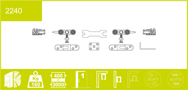 Итальянский производитель раздвижных систем Villes2000 создает свою продукцию, тесно сотрудничая с наиболее известными дизайнерами. Вместе со строгим контролем качества это дает потребителям отличный во всех смыслах ассортимент, который способен удовлетворить любые потребности. Данная модель VILLES 2240 подходит для одного дверного полотна с дерева или профиля шириной от 400 мм и весом до 160 кг. Открытие происходит параллельно стене. Ролики с скользящим подшипником обеспечивают тихий и легкий ход. Это дает возможность установить раздвижные двери в помещениях, где лишний шум нежелателен, например в спальне. VILLES 2240 будет удачным решением там, где требуется максимально эргономично распорядиться жилым пространством рационально выполнить зонирование. Она очень органично впишется в любой стиль помещения - будь то классика или современный хай-тек. Монтируется данная модель как к потолку, так и к стене (крепление для этого в комплект не входят).